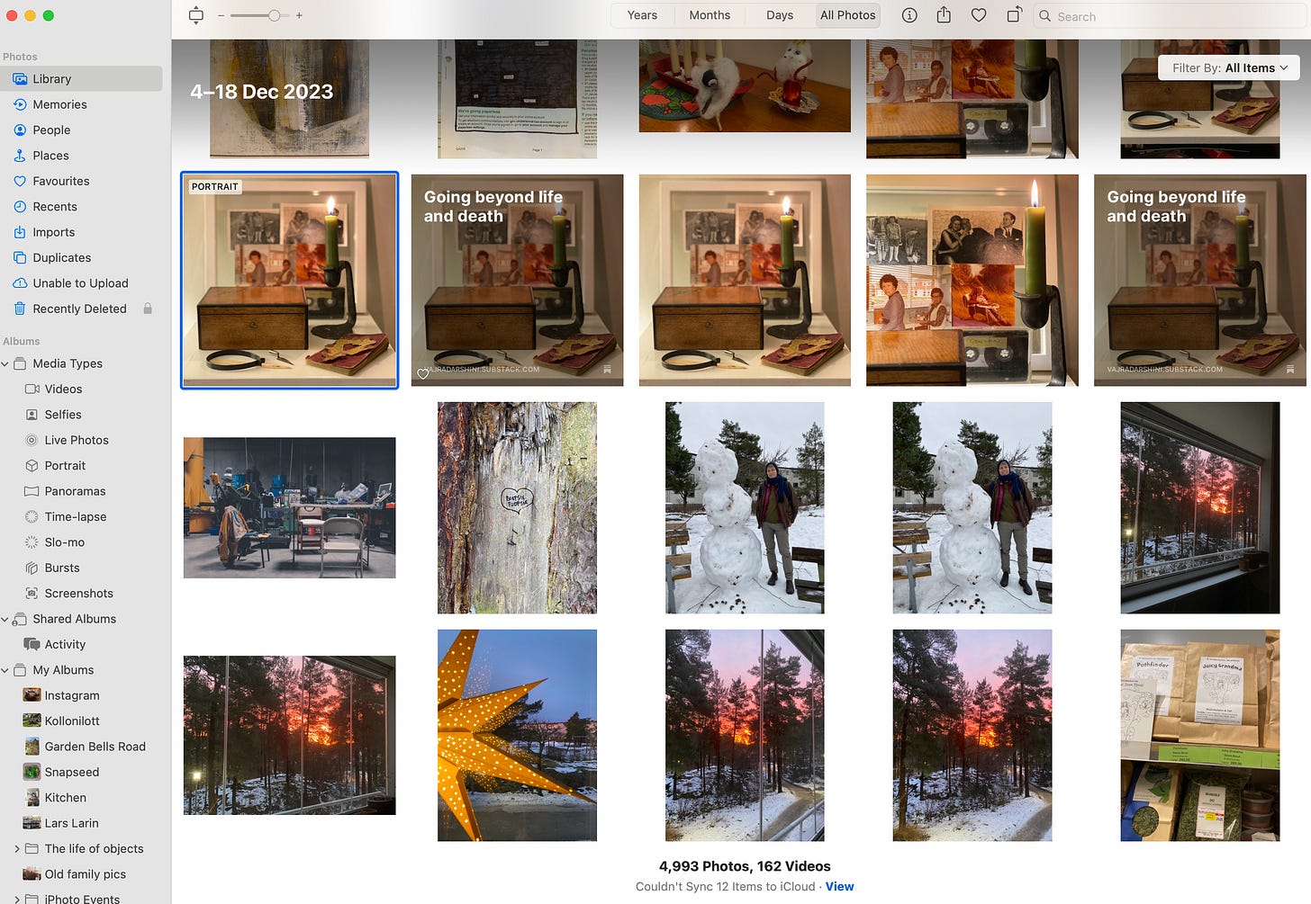 My strategy these days is to enter wholeheartedly into the whole Christmas celebration, even Swedish midnight mass one year. On the whole, this strategy works, but sometimes I feel I lose something of ‘myself’. I abandon the thread of my life completely and it's hard to pick it up again after the celebrations are over.